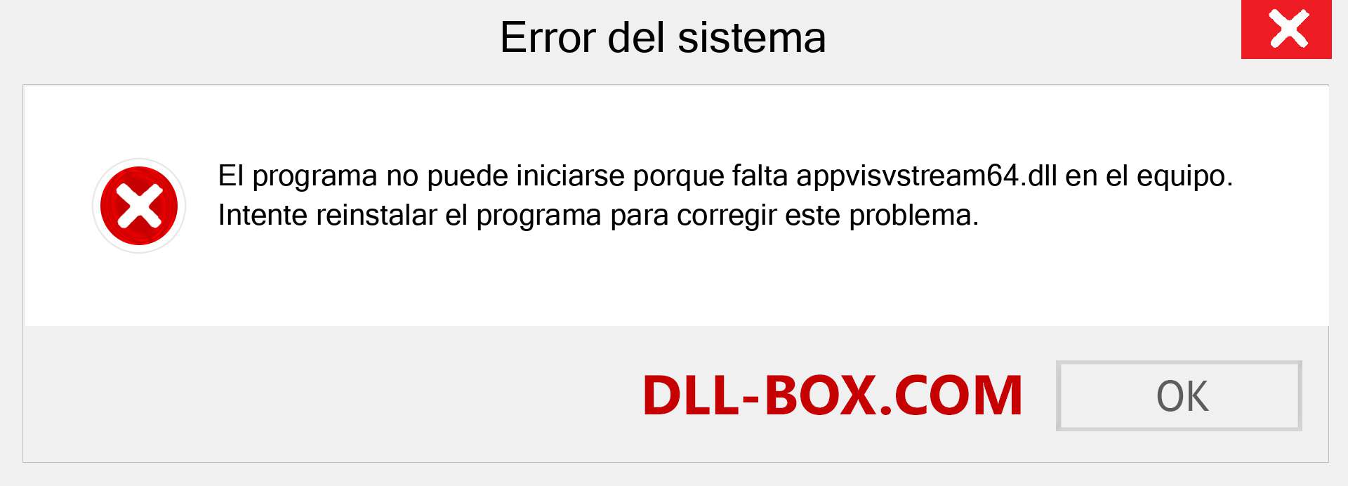 4. La ejecución del código no puede continuar porque no se encontró appvisvstream64.dll. La reinstalación del programa puede solucionar este problema.